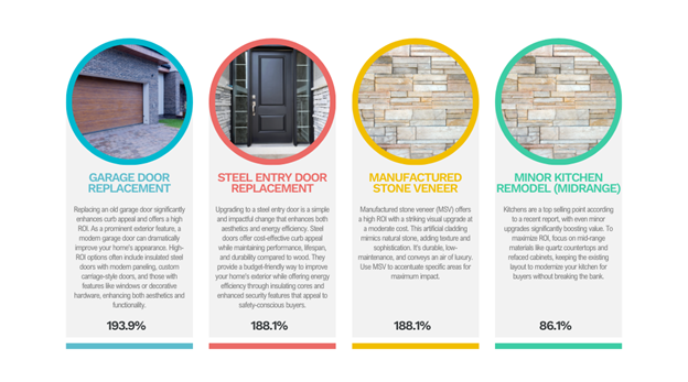 7 out of the 10 best ROI projects all have to do with improvements to the exterior of your home, which makes one thing very clear: Boosting the curb appeal of your home in a cost-effective manner will give you the best ROI if you’re thinking about selling this year.